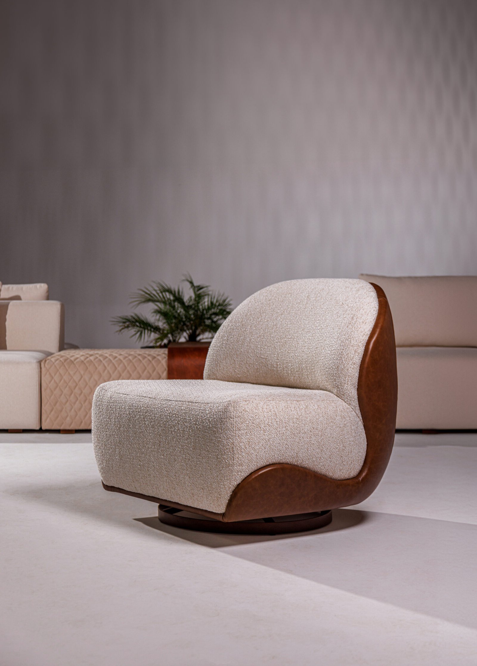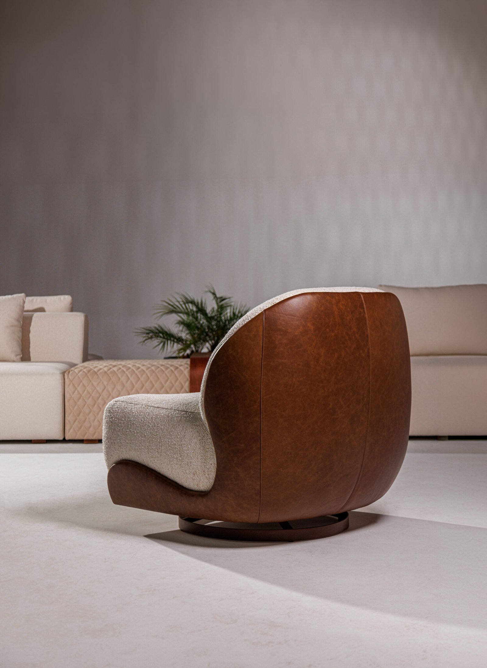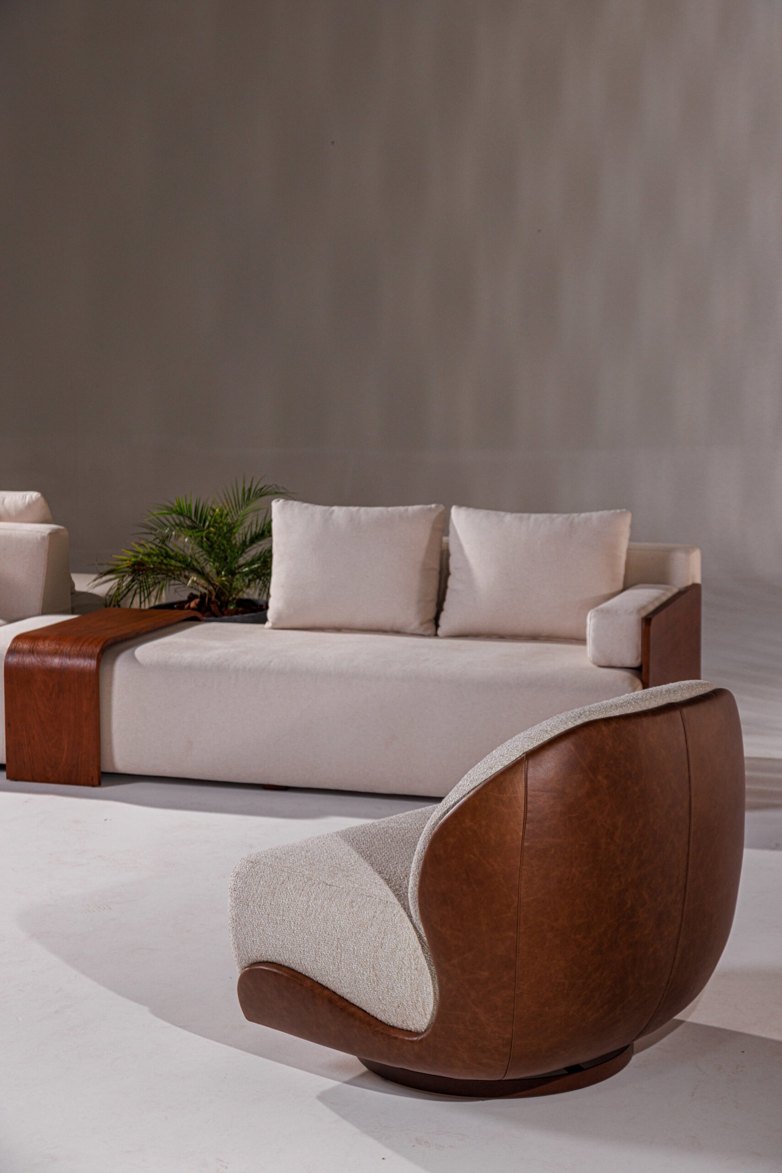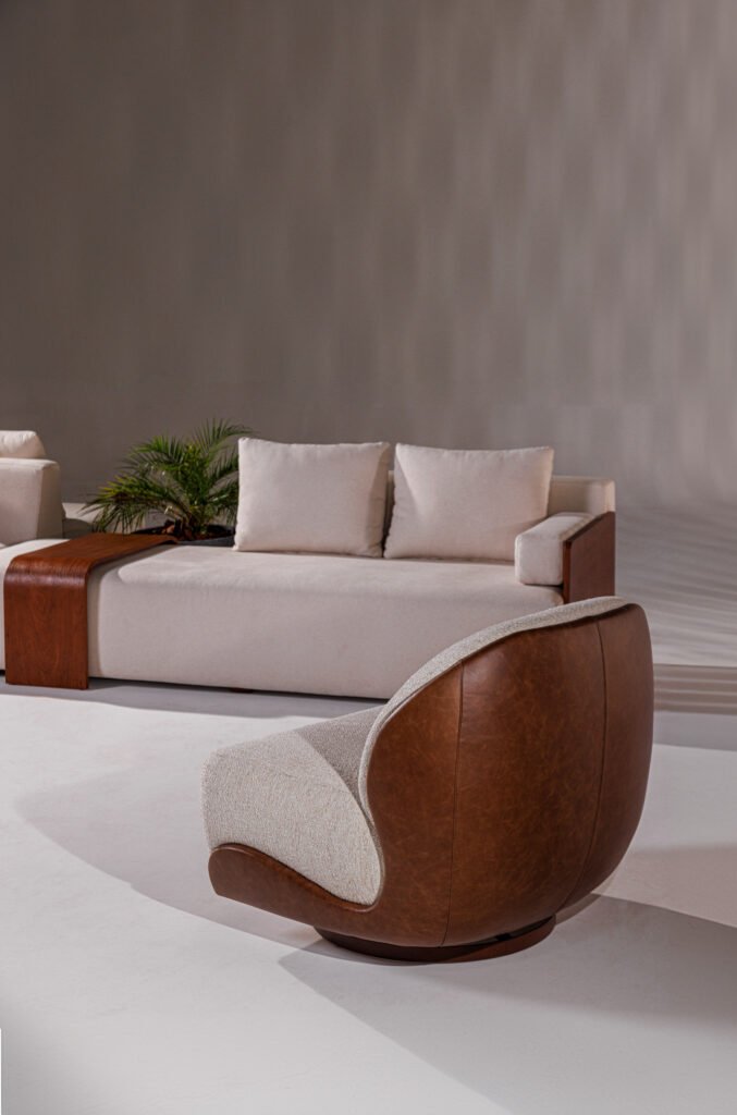 Uma releitura contemporânea e minimalista dos sofás capitonê, que resgata a elegância atemporal do design clássico. A técnica tradicional é reinterpretada de forma sutil, destacando a sofisticação das curvas generosas e da volumetria macia. Sua base em madeira proporciona uma sensação acolhedora e natural, realçando a presença sofisticada e aconchegante do sofá.