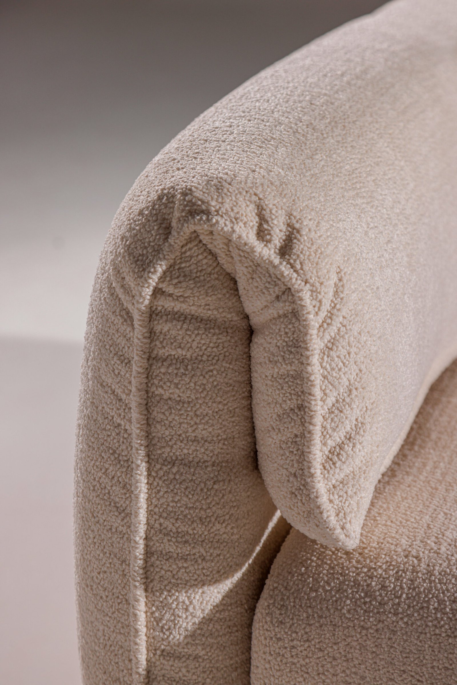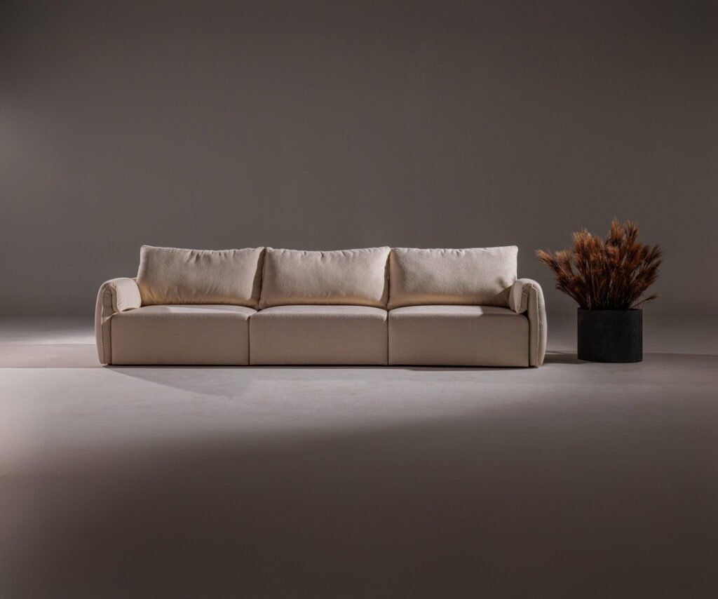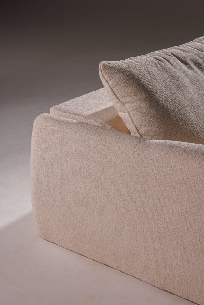 Uma releitura contemporânea e minimalista dos sofás capitonê, que resgata a elegância atemporal do design clássico. A técnica tradicional é reinterpretada de forma sutil, destacando a sofisticação das curvas generosas e da volumetria macia. Sua base em madeira proporciona uma sensação acolhedora e natural, realçando a presença sofisticada e aconchegante do sofá.