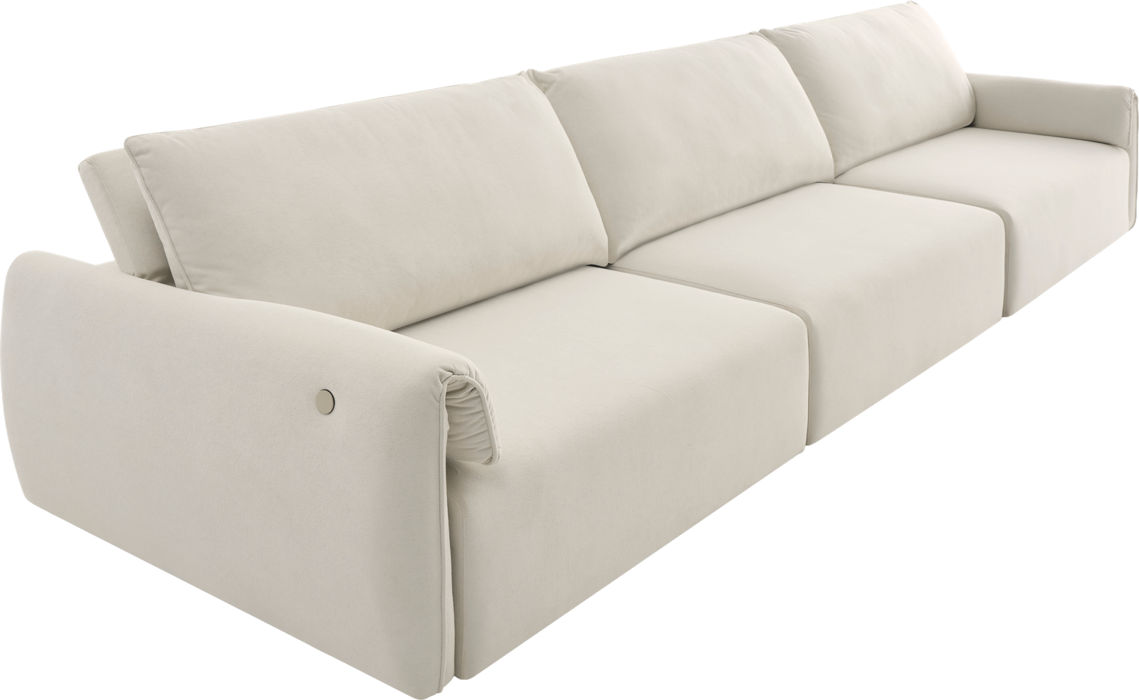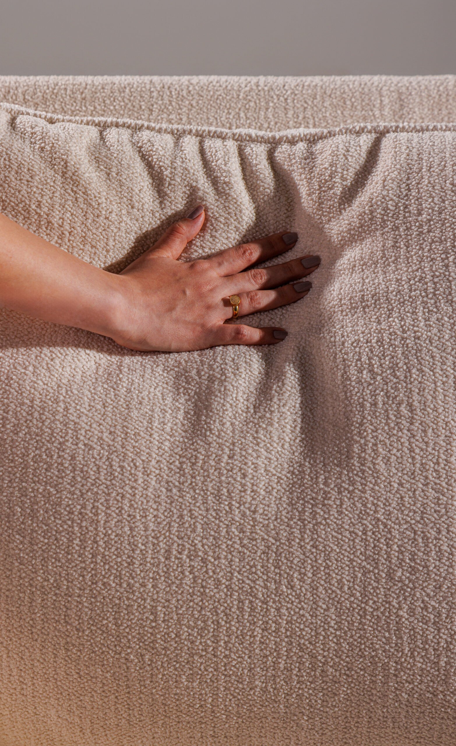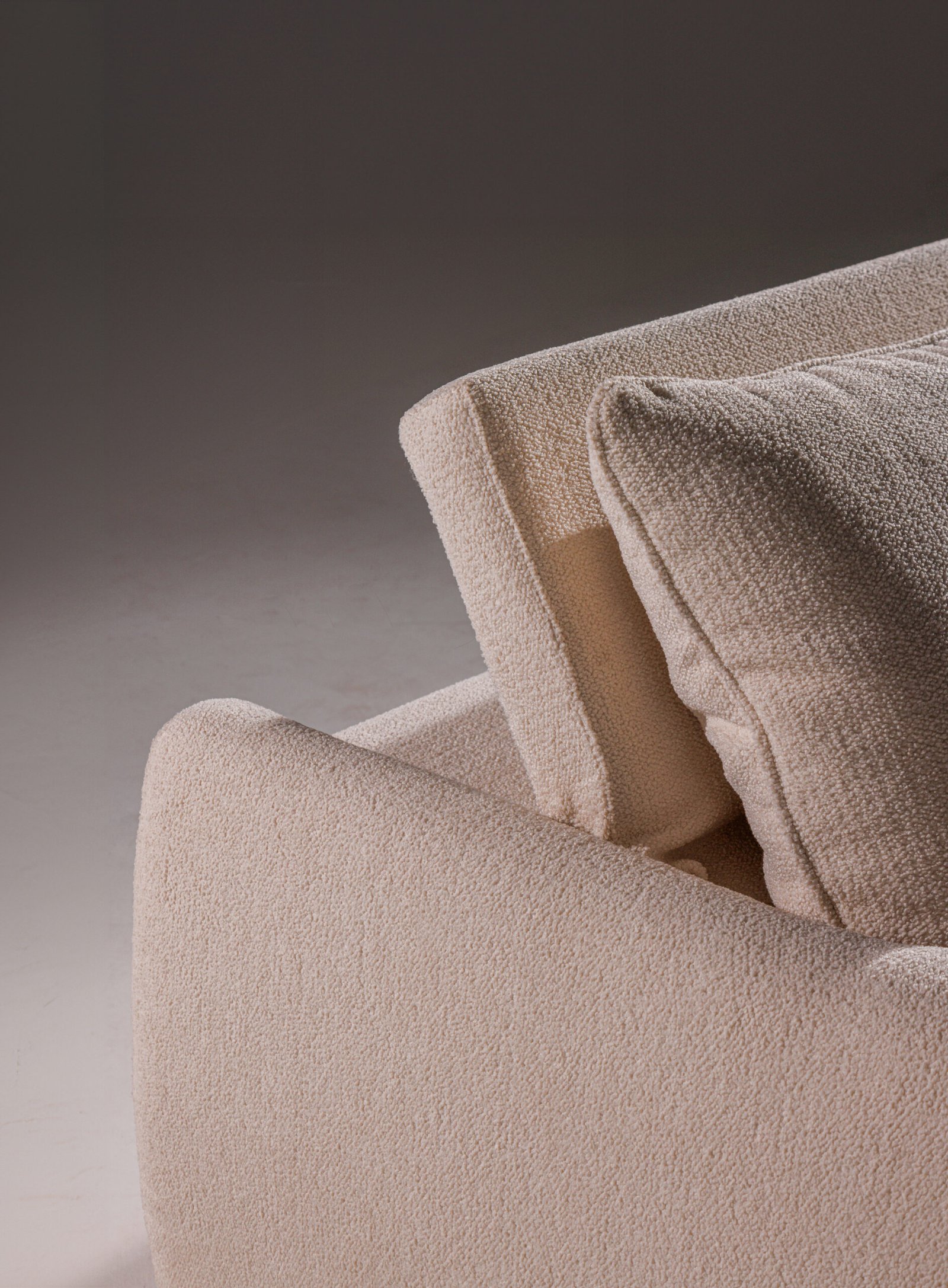 Uma releitura contemporânea e minimalista dos sofás capitonê, que resgata a elegância atemporal do design clássico. A técnica tradicional é reinterpretada de forma sutil, destacando a sofisticação das curvas generosas e da volumetria macia. Sua base em madeira proporciona uma sensação acolhedora e natural, realçando a presença sofisticada e aconchegante do sofá.